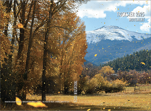 Northern’s Department of Language and Letters released the first issue of Trickster in 2014, making the 2025 edition the tenth annual publication. The perspective of the journal is shaped by the landscape and cultures of northern New Mexico, but especially welcomes original work on the current theme. Submissions for Trickster are reviewed and selected by student editors with the guidance of faculty advisors. Publication of the journal is supported entirely by sales and community fundraising.